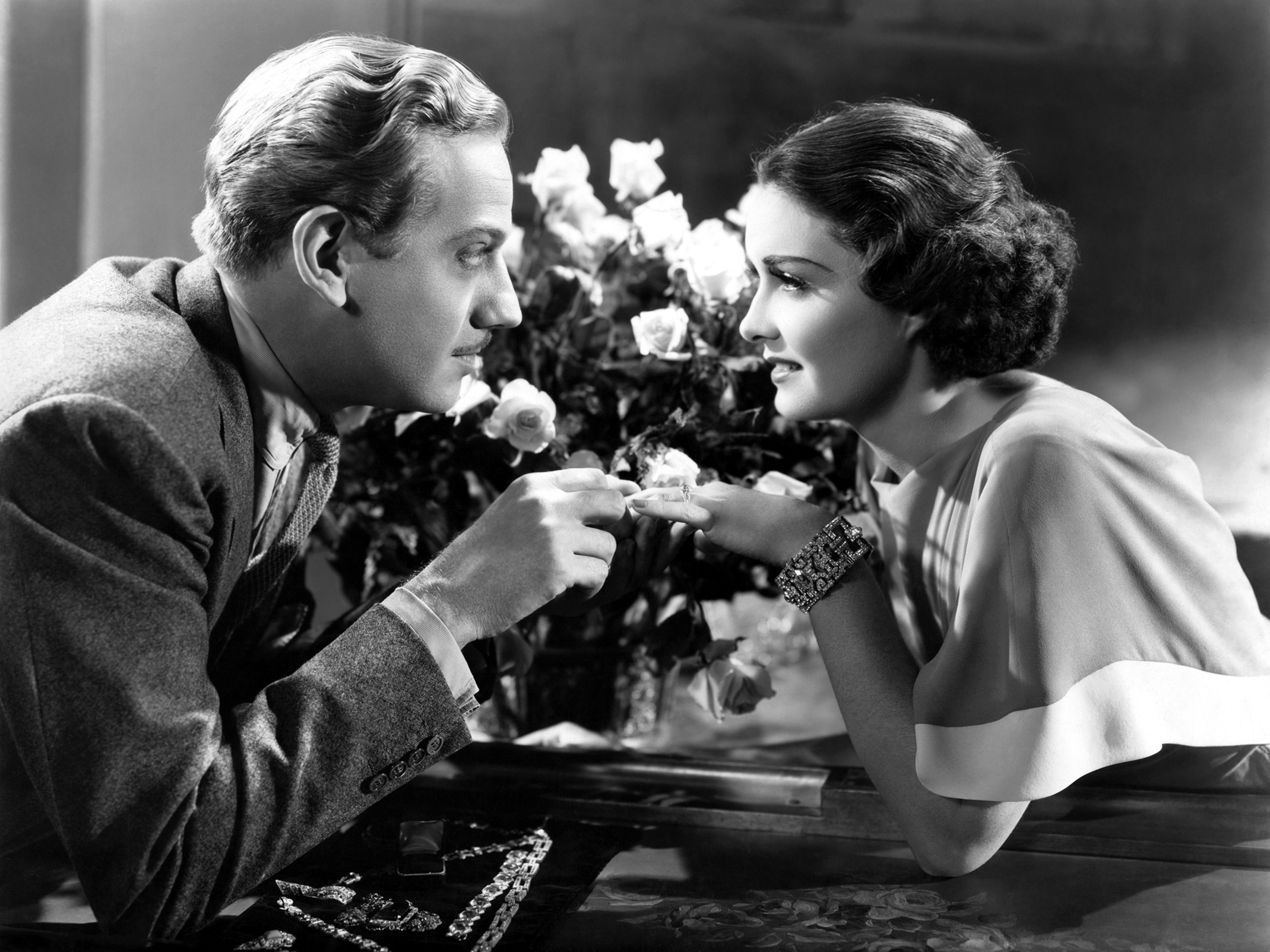 (L to R) Warren William, Melvyn Douglas, Virginia Bruce