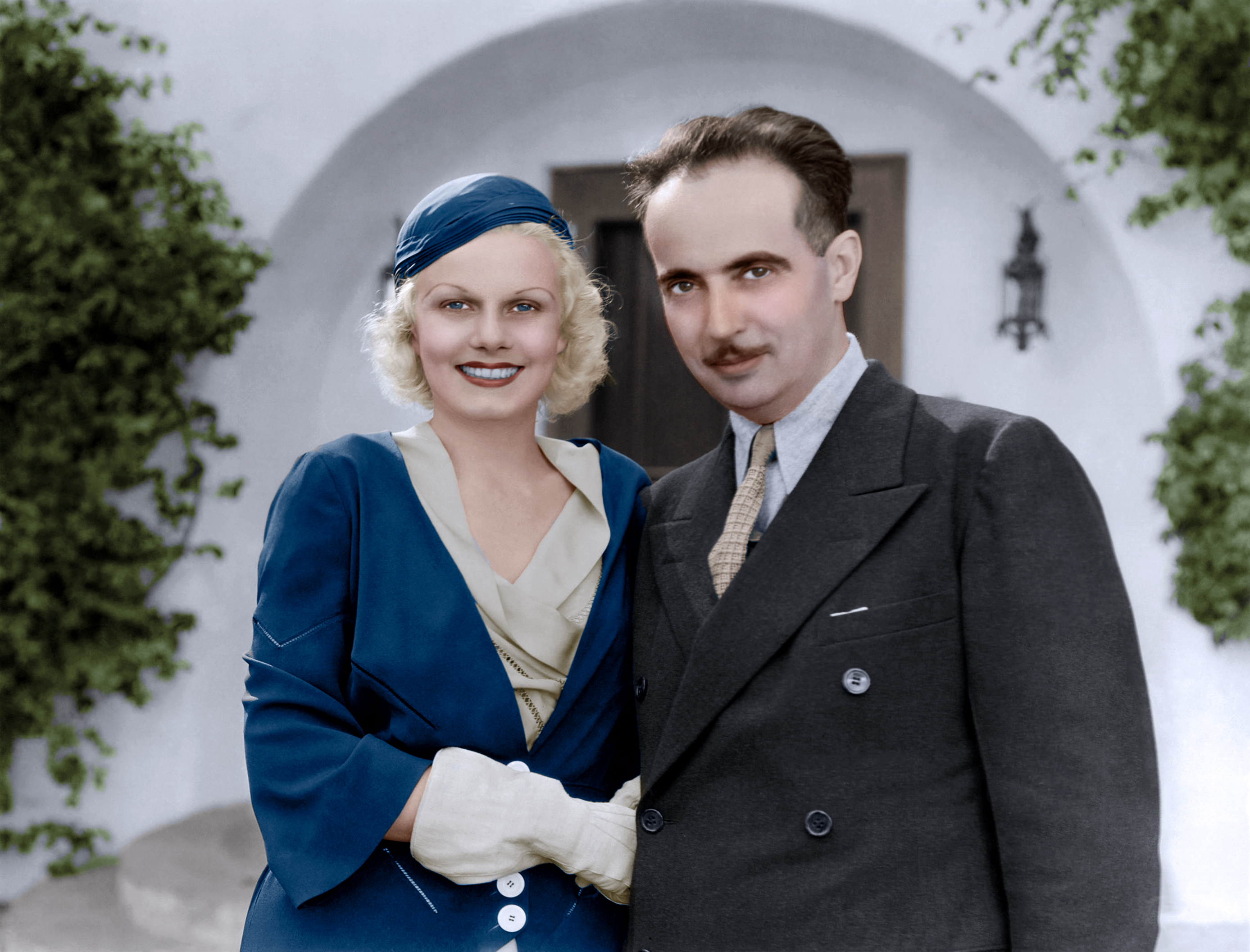 With husband Paul Bern (sepia version, plus color by Steven)