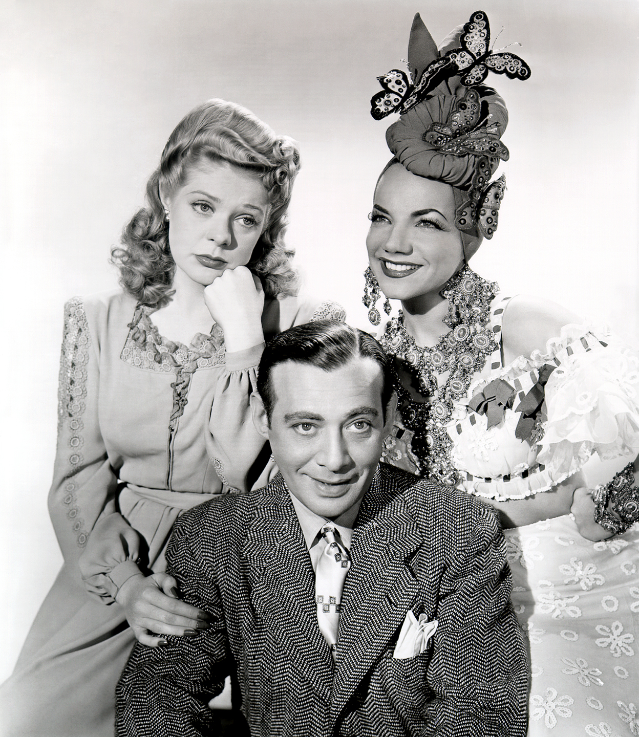 (L to R) Alice Faye, Phil Baker, Carmen Miranda