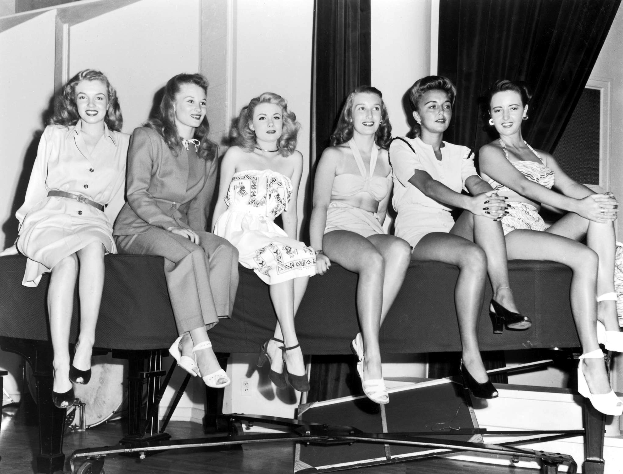 (L to R) Lauren Bacall, Humphrey Bogart, Marilyn Monroe