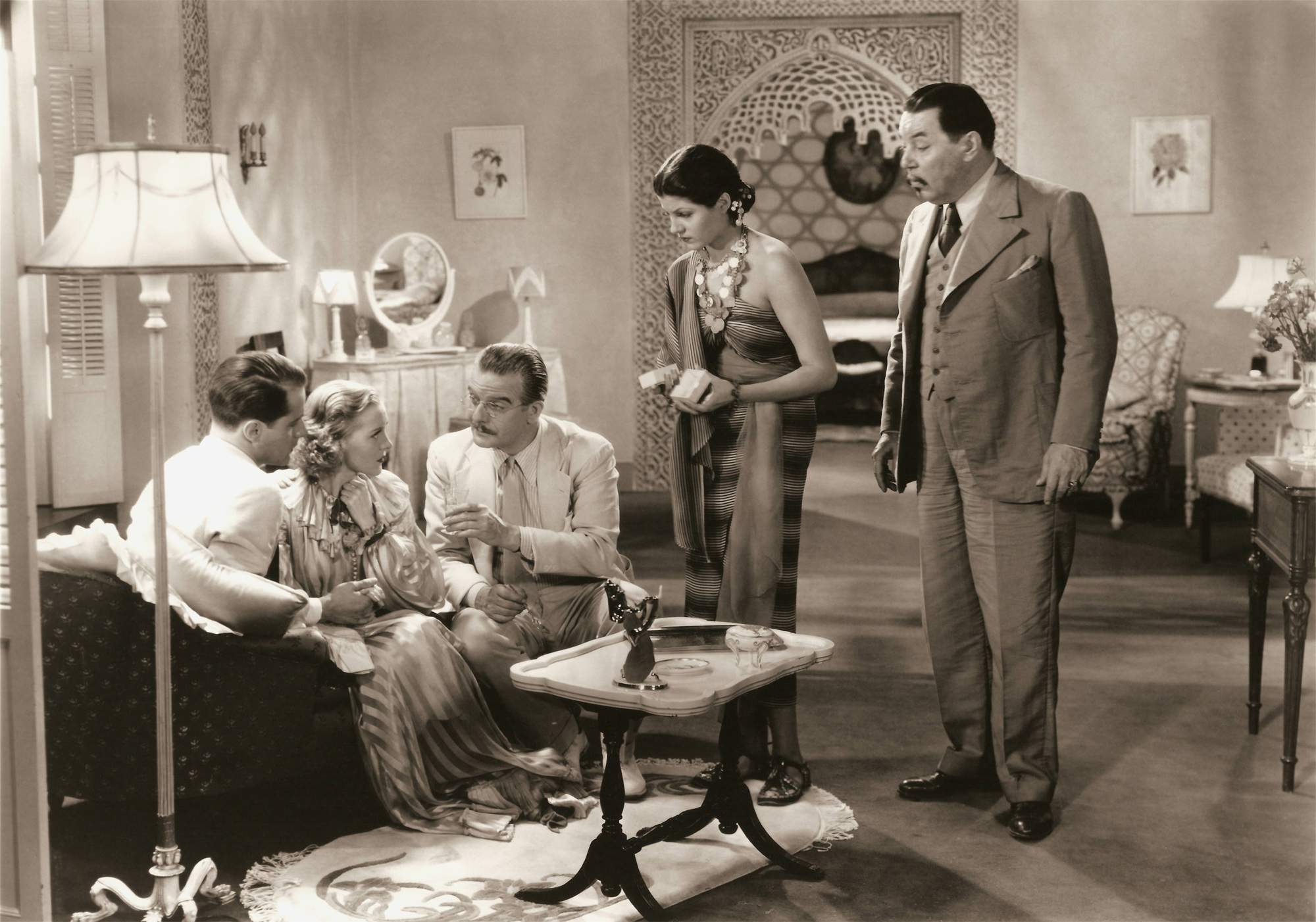 (L to R) Thomas Beck, Pat Paterson, Jameson Thomas, Rita Hayworth, Warner Oland