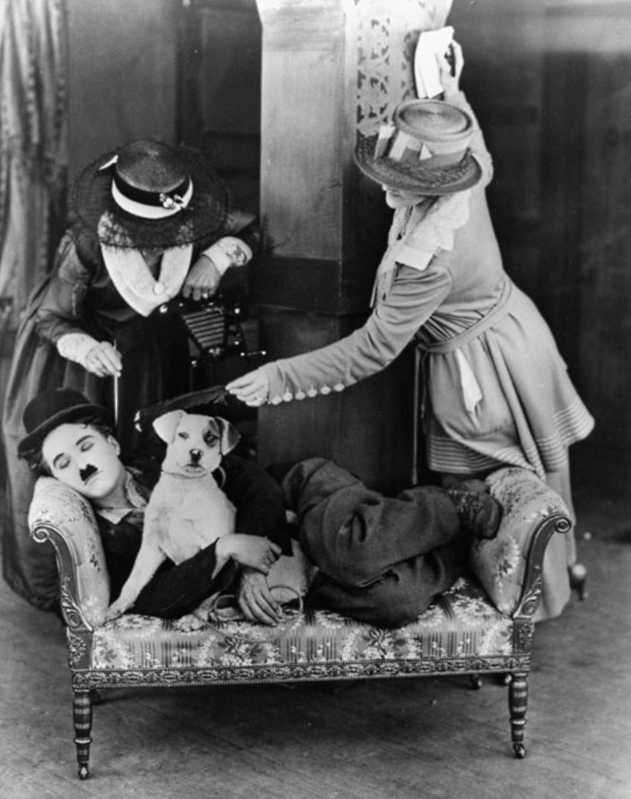 When Charlie goes into a cabaret where Scraps would not be allowed, he hides the
