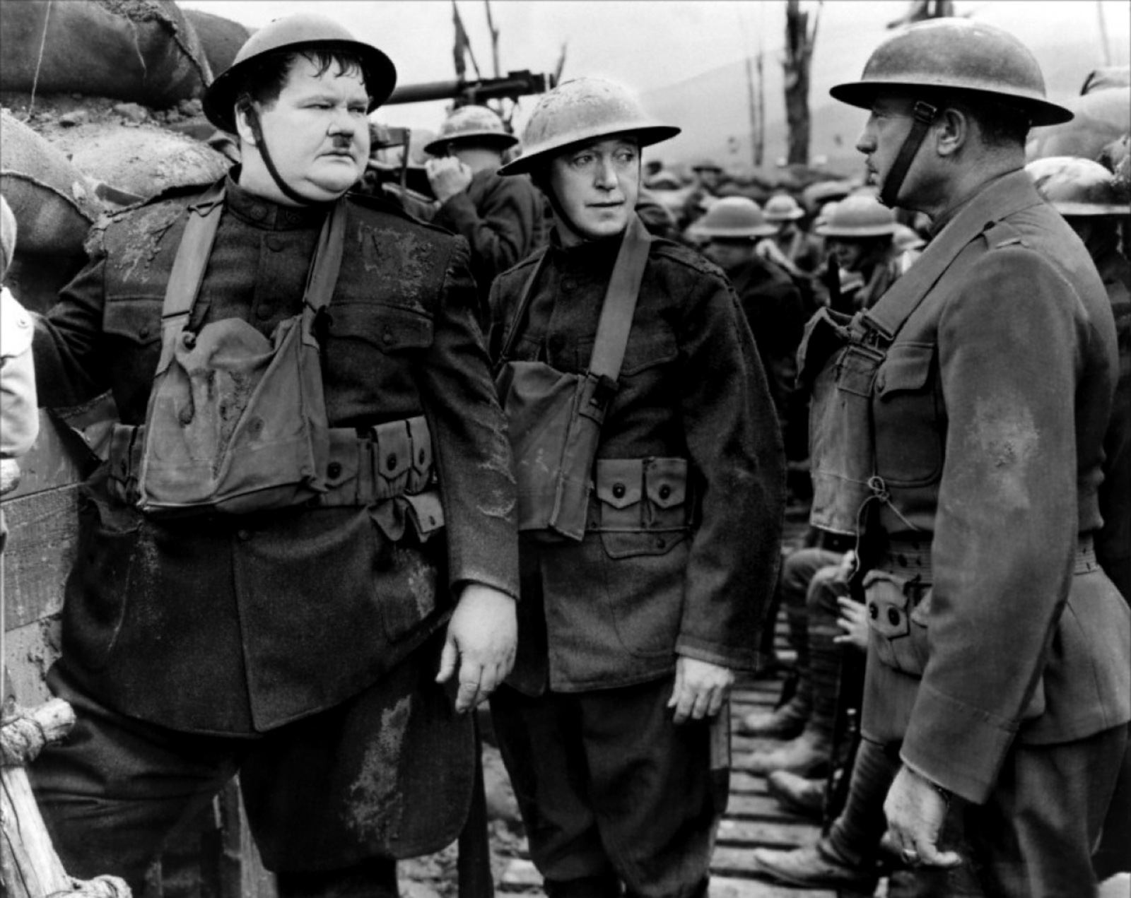 with a pet crow concealed in Hardy's trousers during inspection.