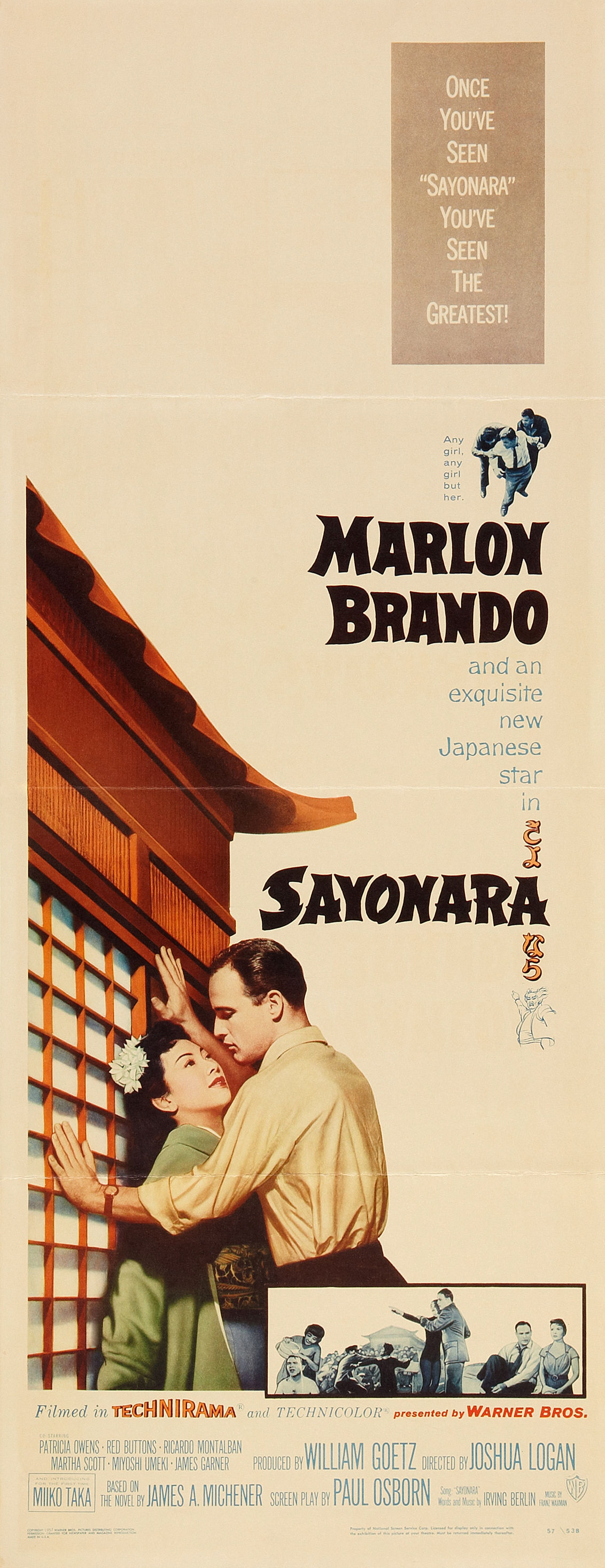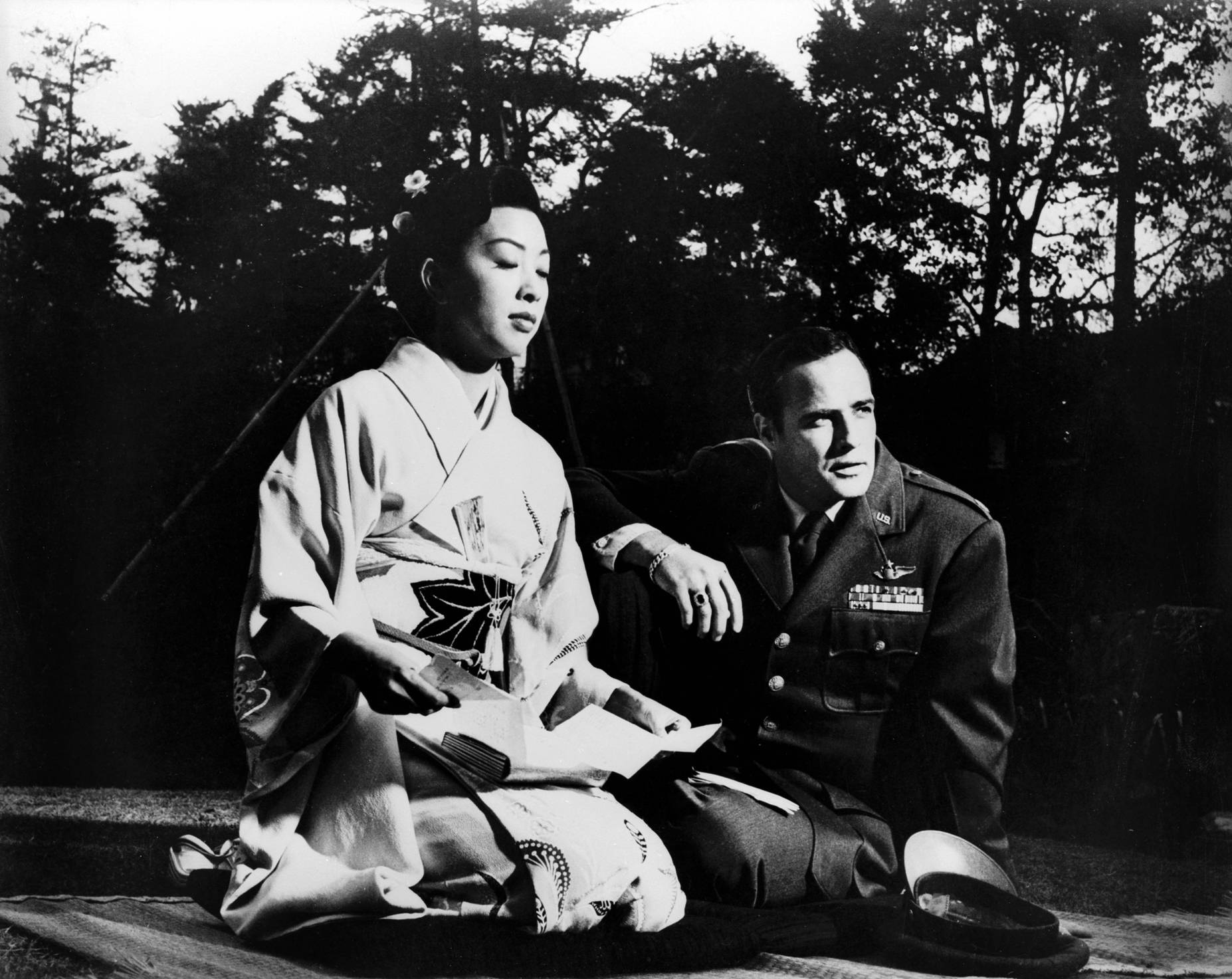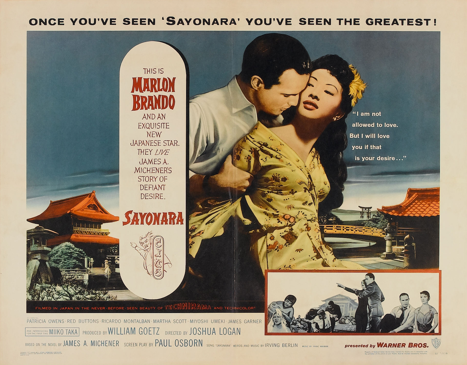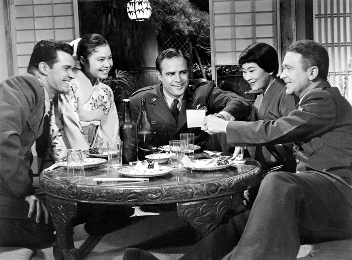 Marlon Brando, Patricia Owens, Red Buttons, Miiko Taka, Ricardo Montalban,