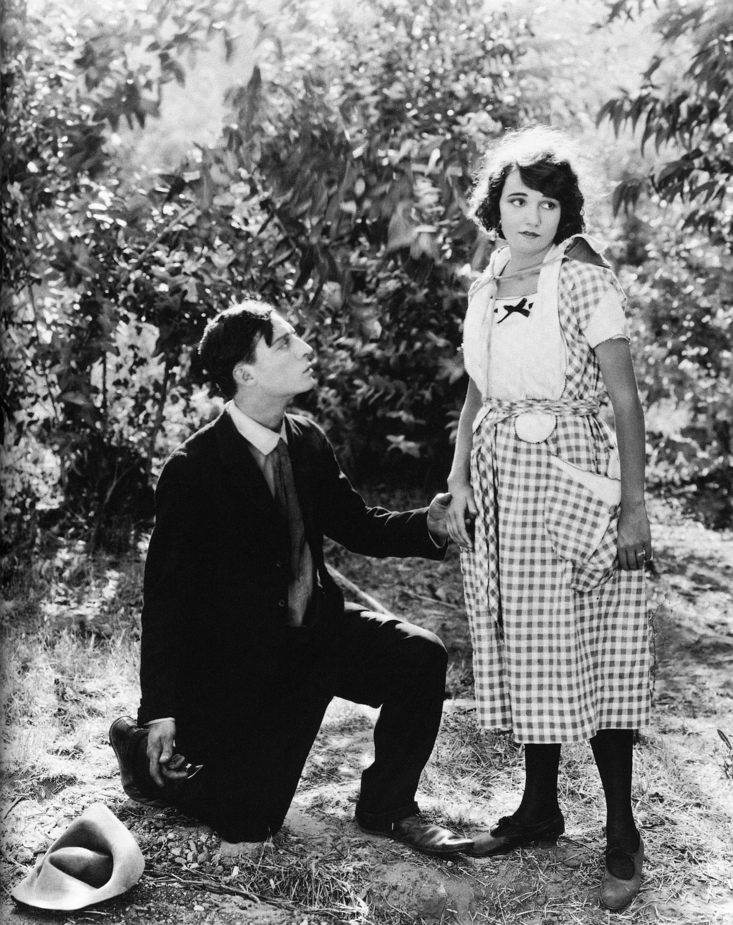 kneeling position for a formal marriage proposal, which she accepts.