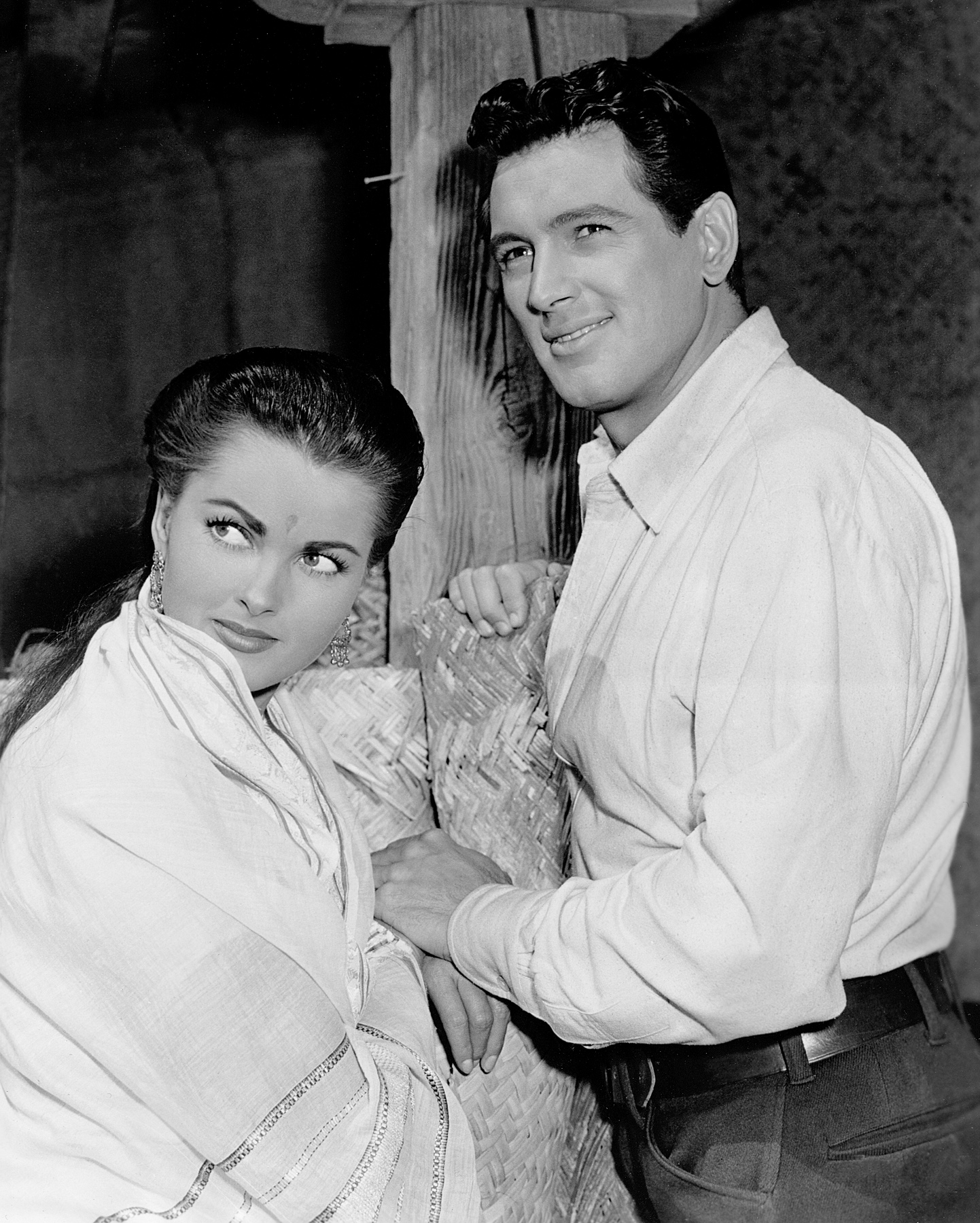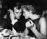 Jane Russell cozying up to her