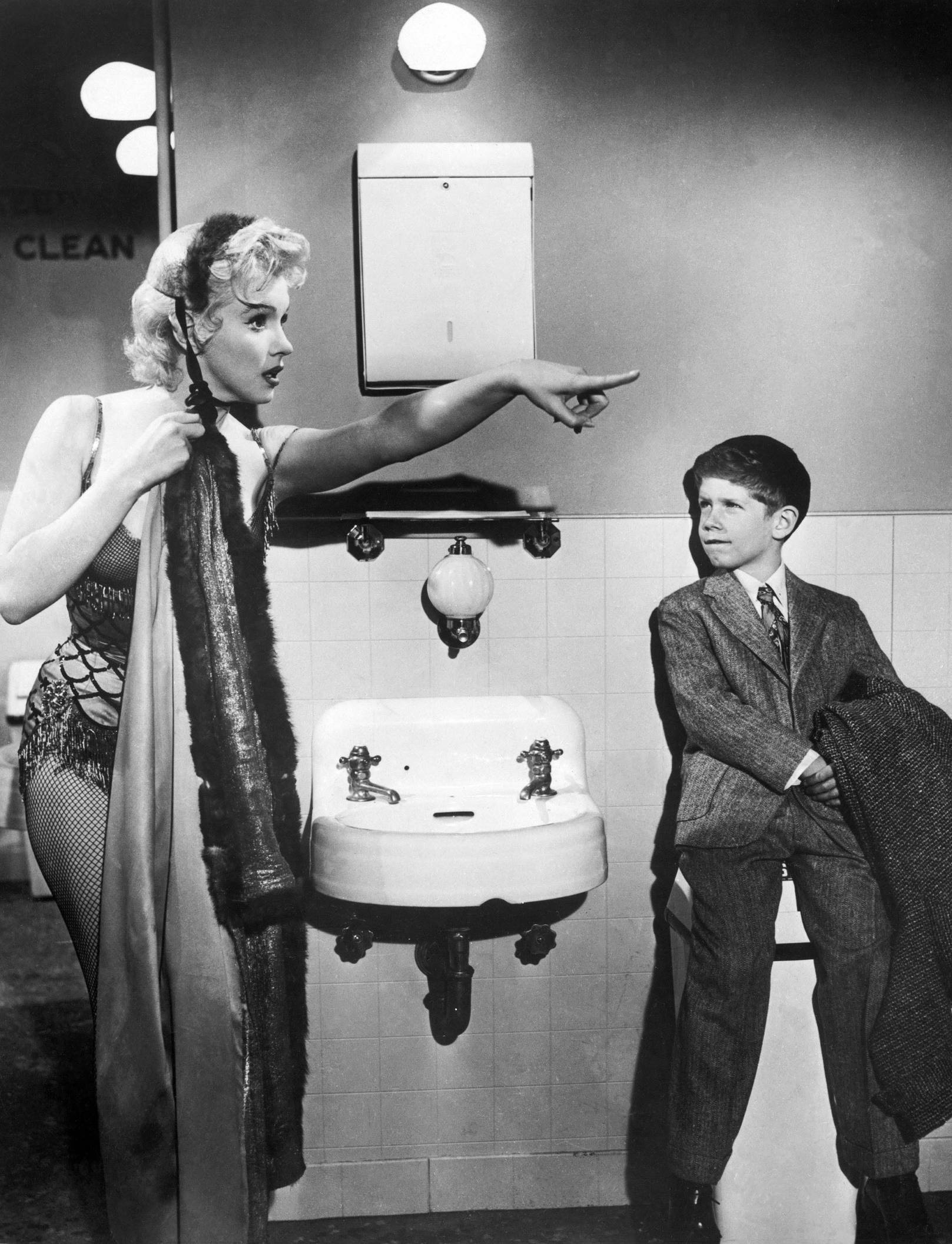 Jayne Mansfield who's looking for nylon stockings—and what better