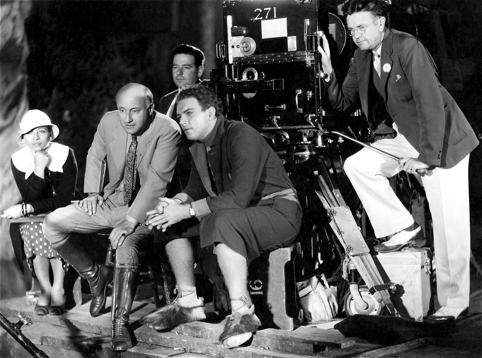 Marlene Dietrich watches from the front row—also look for Stooge