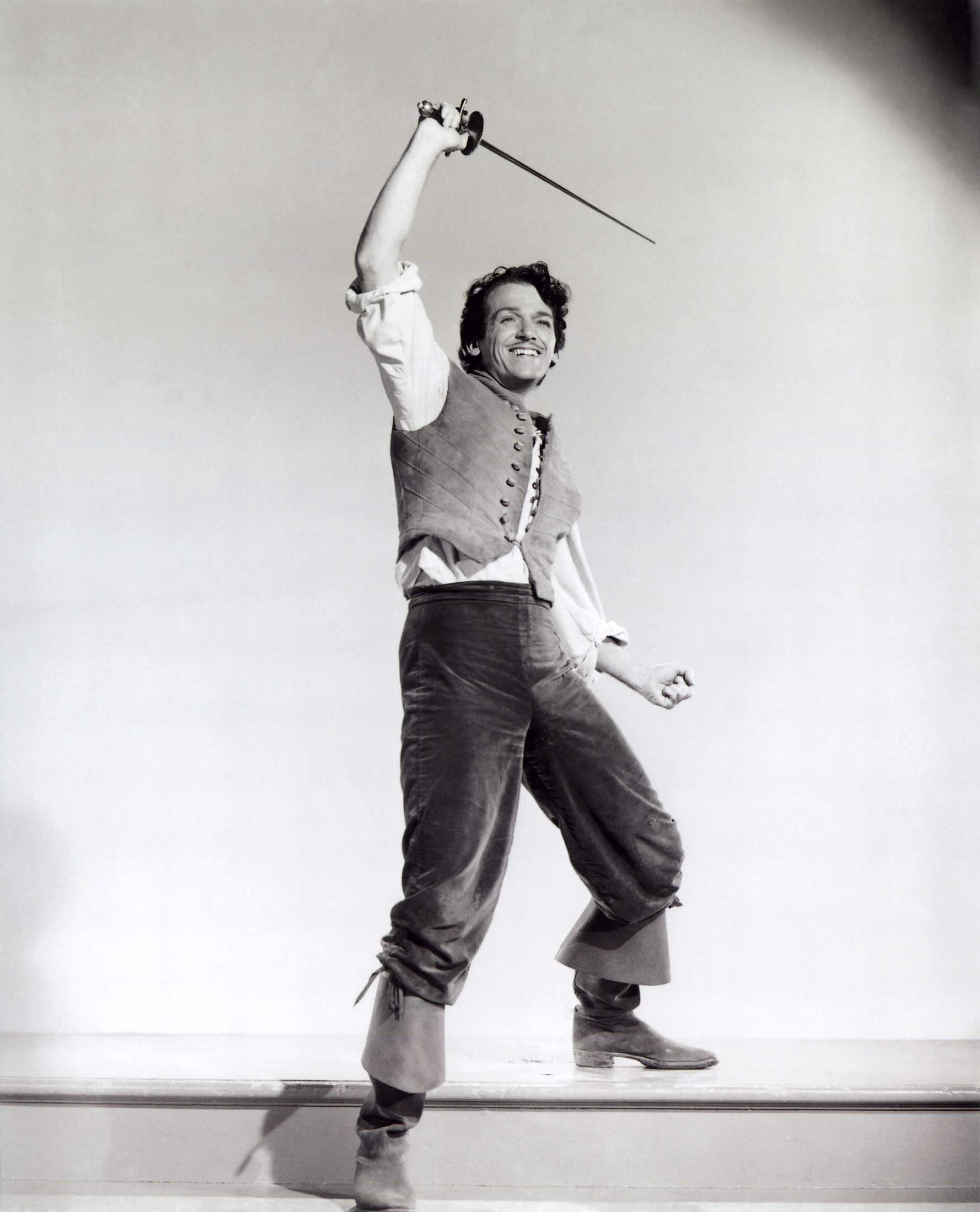 Douglas Fairbanks, Jr., buckling his swashes in the tradition of his