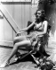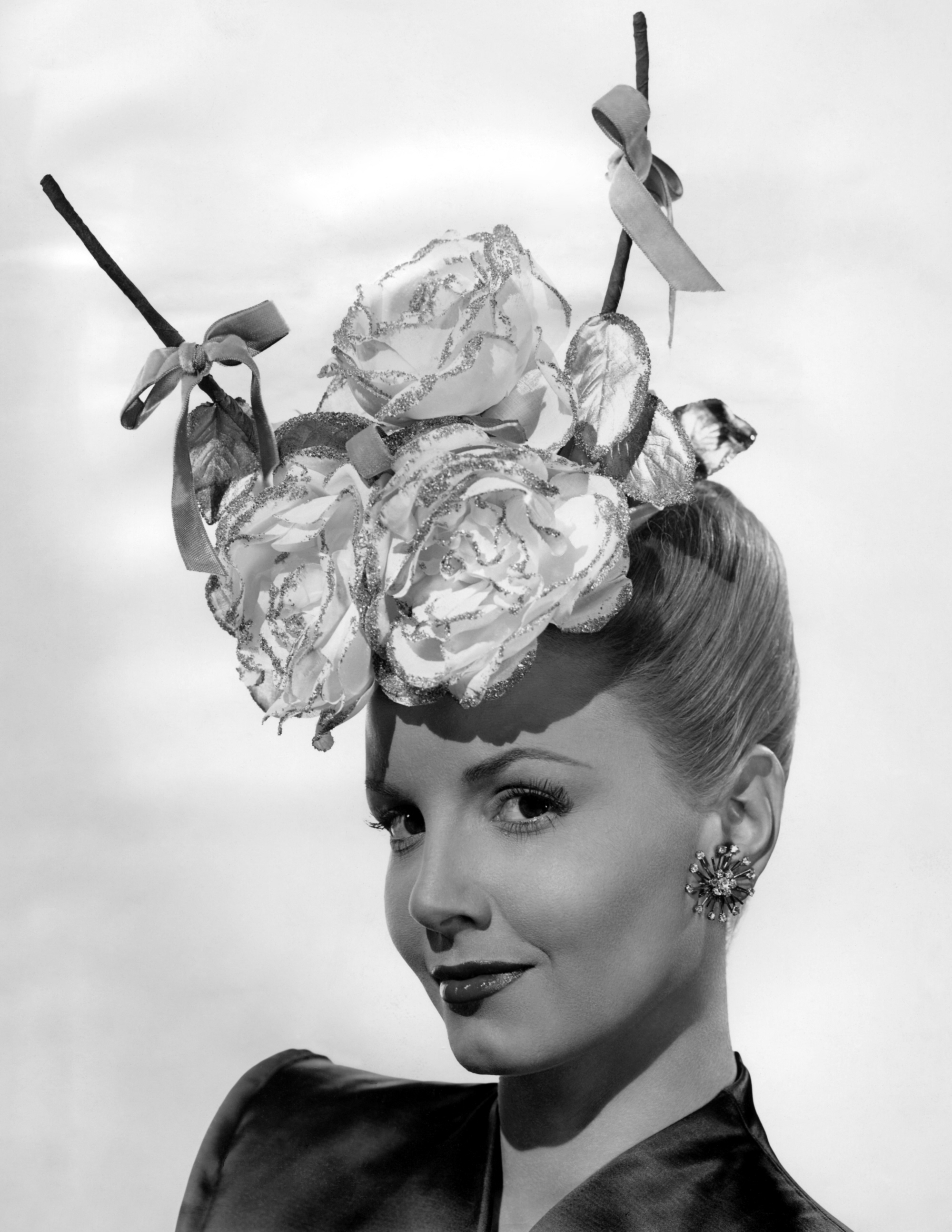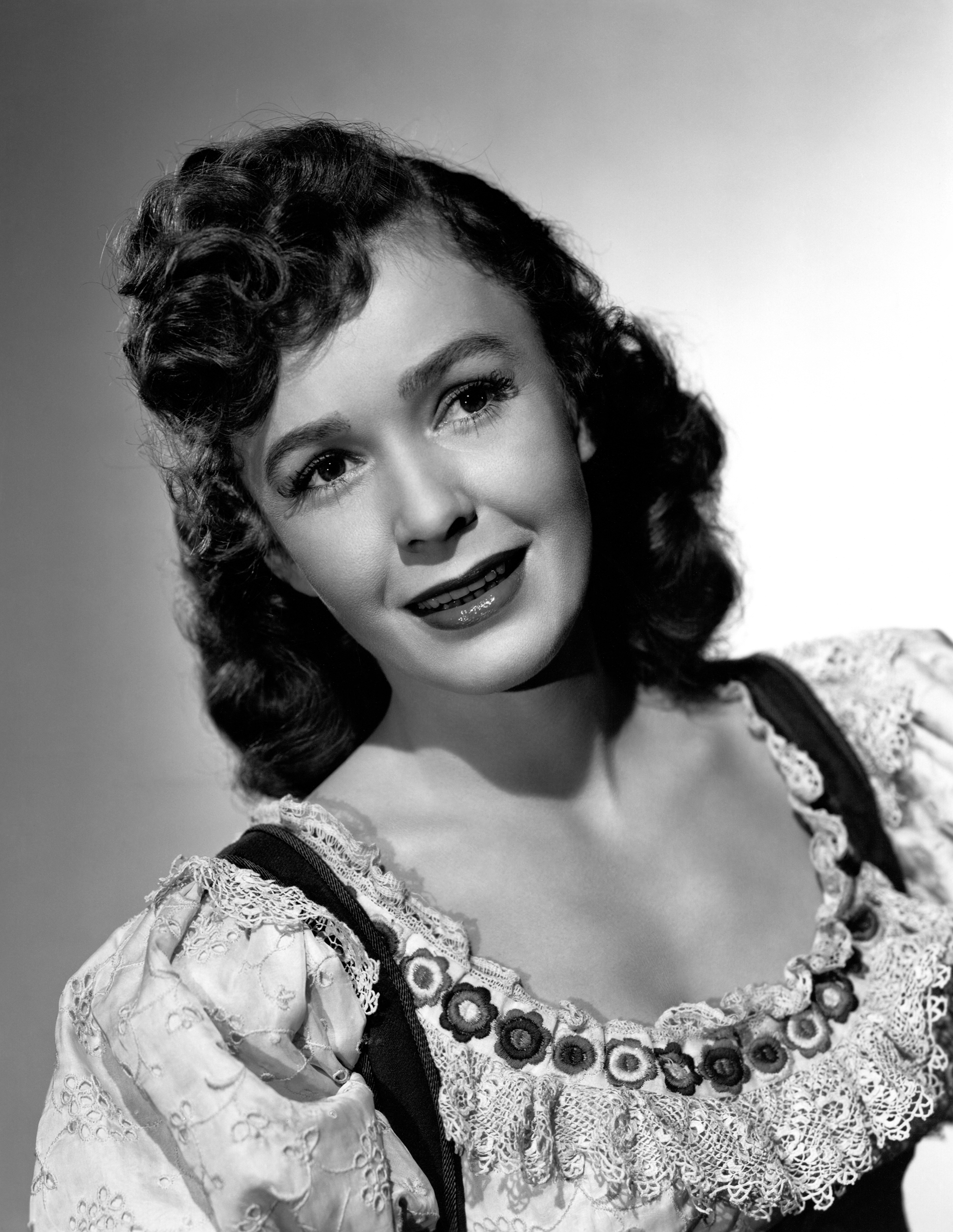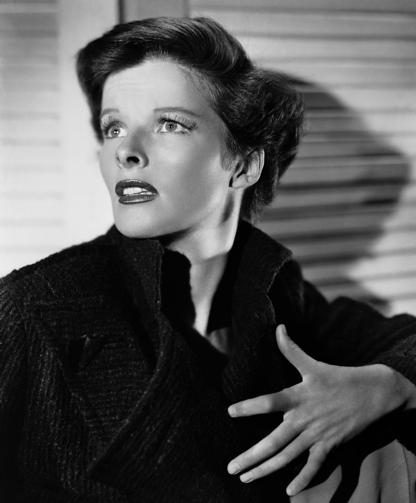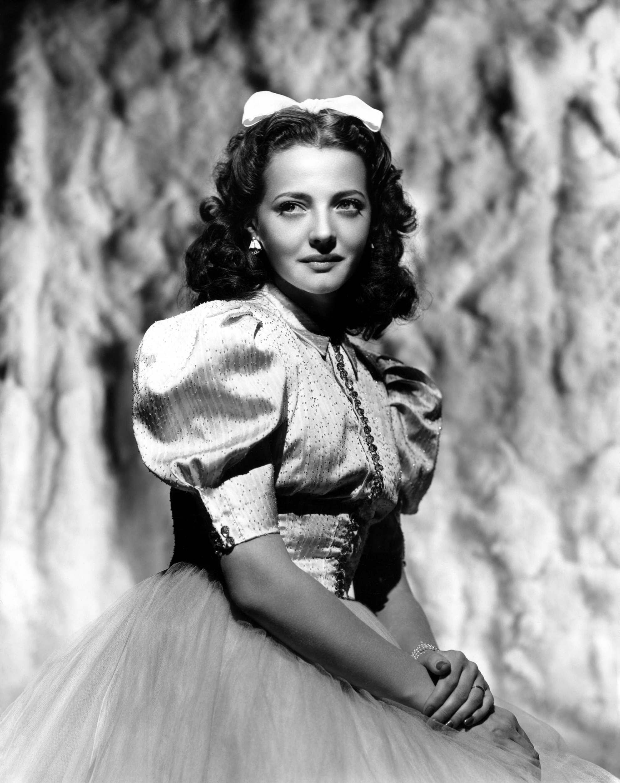 Joan Fontaine relaxing in a sunny courtyard and thinking about